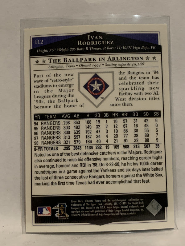 #112 Ivan Rodriguez Texas Rangers 1999 Ultimate Victory Baseball Card