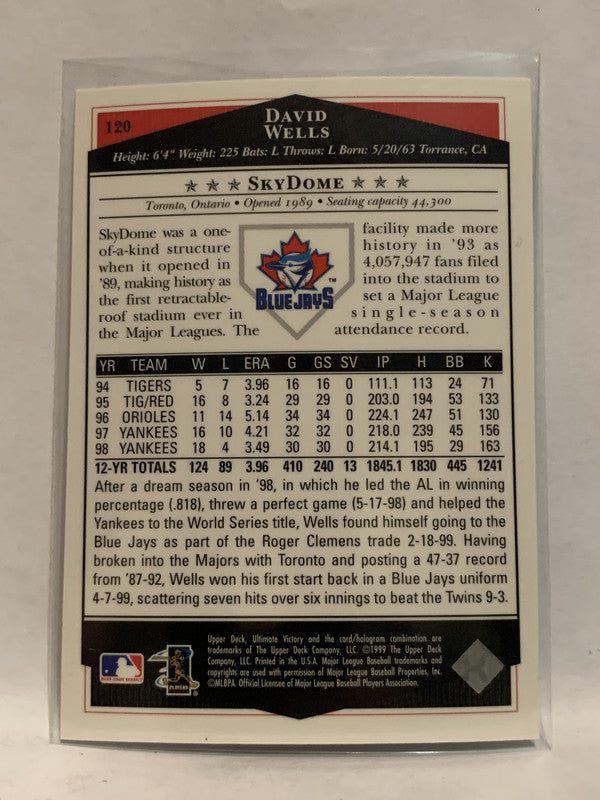 #120 David Wells Toronto Blue Jays 1999 Ultimate Victory Baseball Card