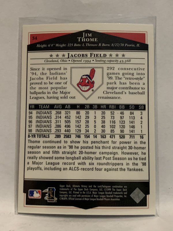 #34 Jim Thome Cleveland Indians 1999 Ultimate Victory Baseball Card