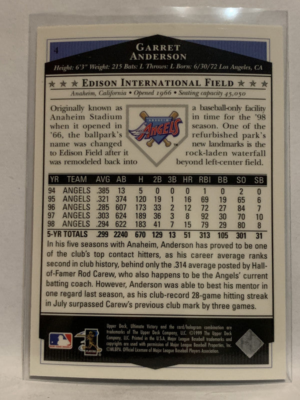 #4 Garret Anderson Los Angeles Angels 1999 Ultimate Victory Baseball Card