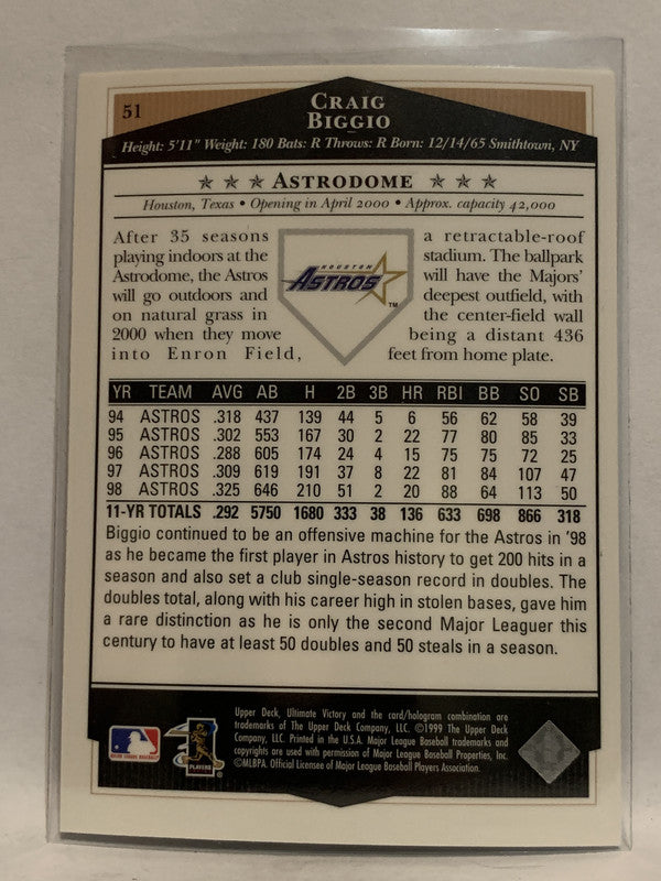 #51 Craig Biggio Houston Astros 1999 Ultimate Victory Baseball Card