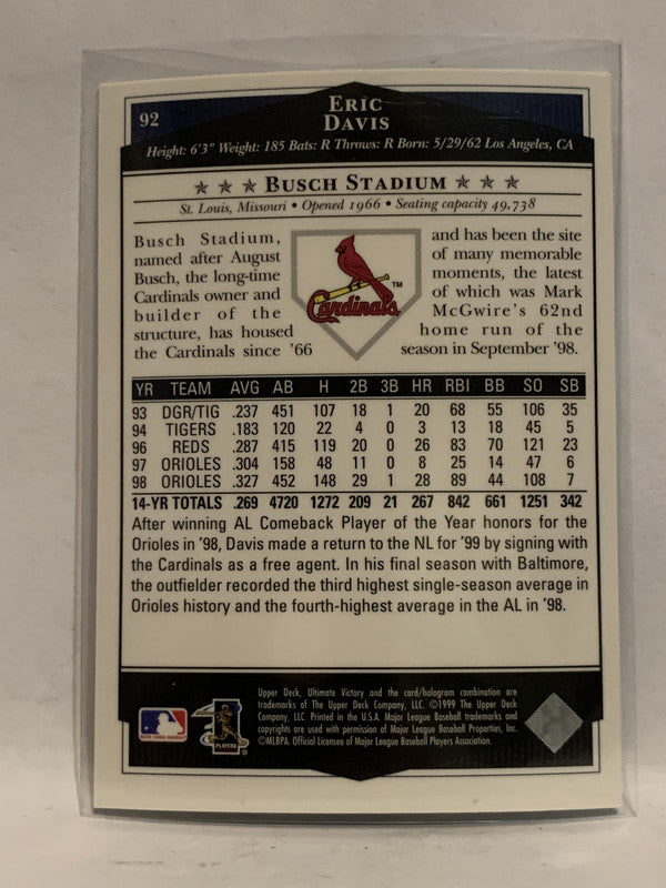 #92 Eric Davis Baltimore Orioles 1999 Ultimate Victory Baseball Card