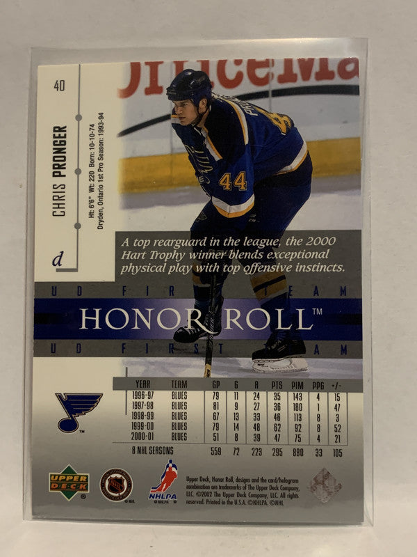 #40 Chris Pronger Honor Roll St Louis Blues 2001-02 Upper Deck Hockey Card NHL