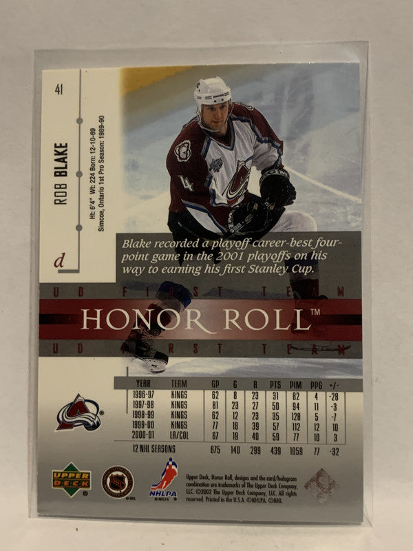 #41 Rob Blake Honor Roll Colorado Avalanche 2001-02 Upper Deck Hockey Card NHL
