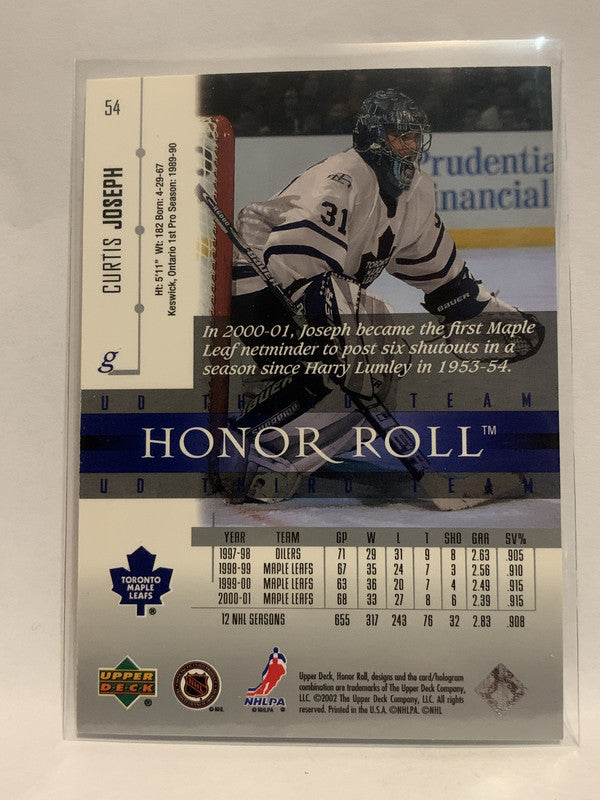 #54 Curtis Joseph Honor Roll Toronto Maple Leafs 2001-02 Upper Deck Hockey Card NHL