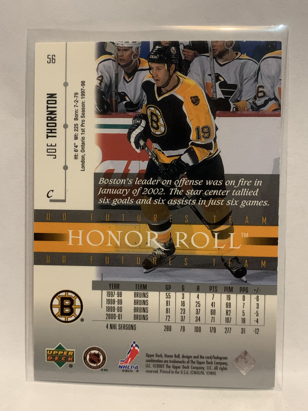 #56 Joe Thornton Boston Bruins 2001-02 Upper Deck Hockey Card NHL