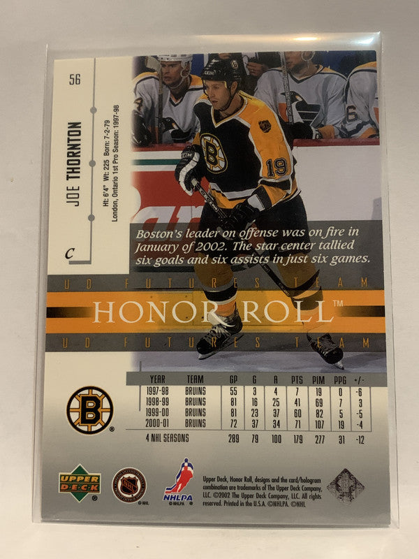 #56 Joe Thornton Honor Roll Boston Bruins 2001-02 Upper Deck Hockey Card NHL