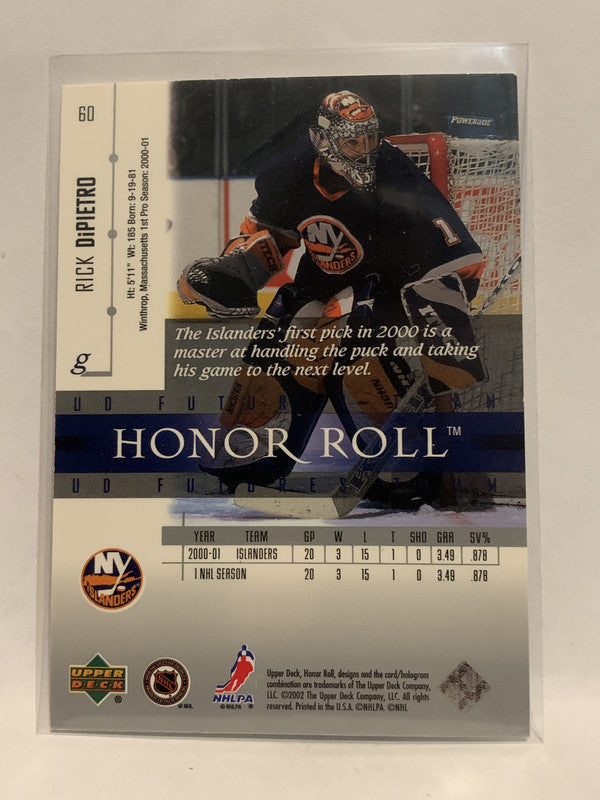 #60 Rick Dipietro Honor Roll New York Islanders 2001-02 Upper Deck Hockey Card NHL