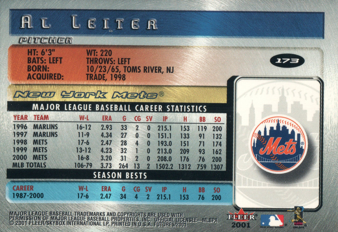 #173 Al Leiter New York Mets 2001 Fleer Futures Baseball Card OD