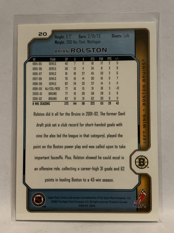 #20 Brian Rolston Boston Bruins 2002-03 Upper Deck Victory Hockey Card