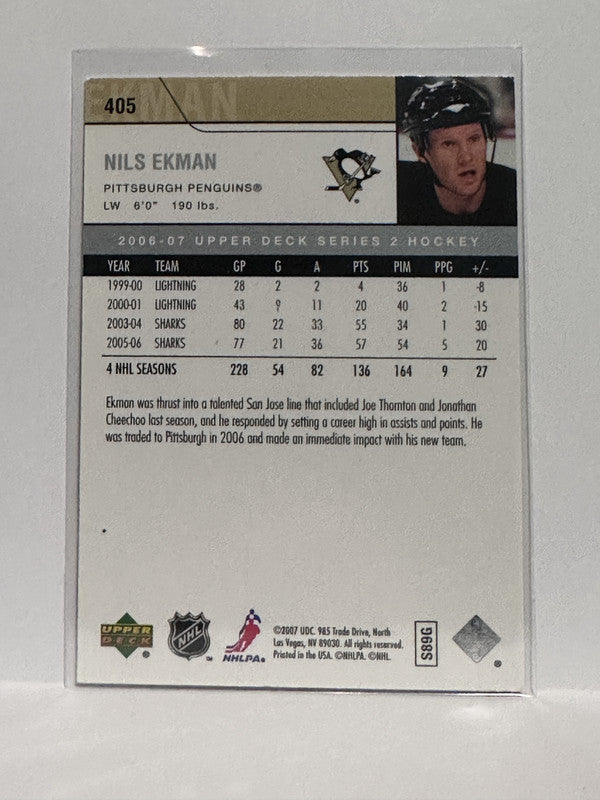 #405 Nils Ekman Pittsburgh Penguins 06-07 Upper Deck Hockey Card