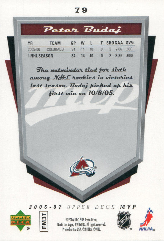 #79 Peter Budaj Colorado Avalanche 2006-07 Upper Deck MVP Hockey Card