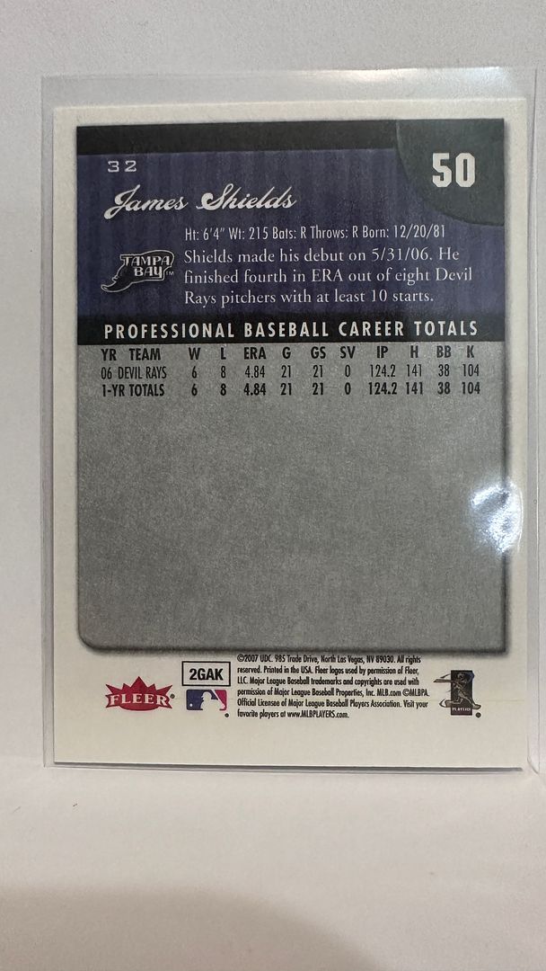 #32 James Shields Tampa Bay Rays 2007 Fleer Baseball Card