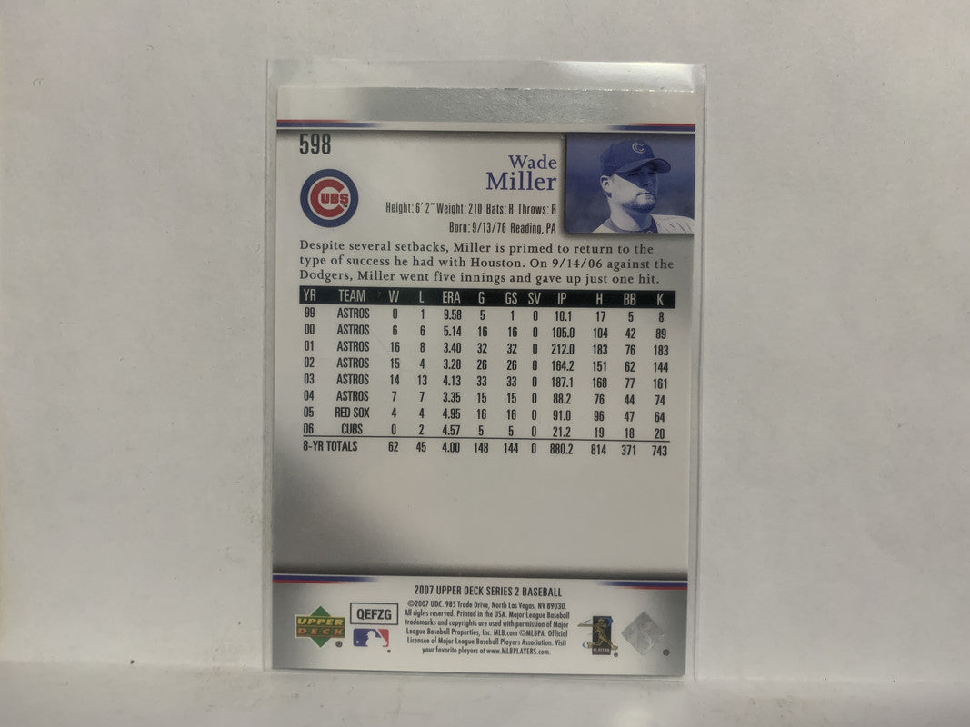 #598 Wade Miller Chicago Cubs 2007 Upper Deck Series 2 Baseball Card NC