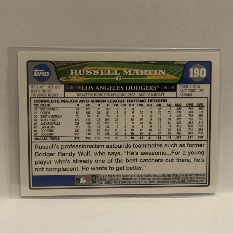 #190 Russell Martin Los Angeles Dodgers 2008 Topps Baseball Card HM