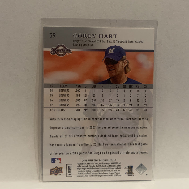#59 Corey Hart Milwaukee Brewers 2008 Upper Deck Series 1 Baseball Card HP