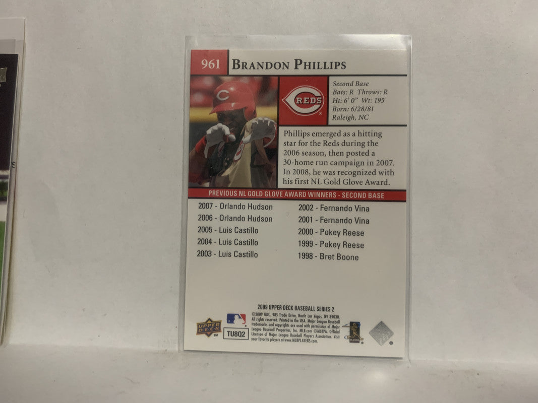 #961 Brandon Phillips NL Gold Glove Award Cincinnati Reds 2009 Upper Deck Series 2 Baseball Card NM