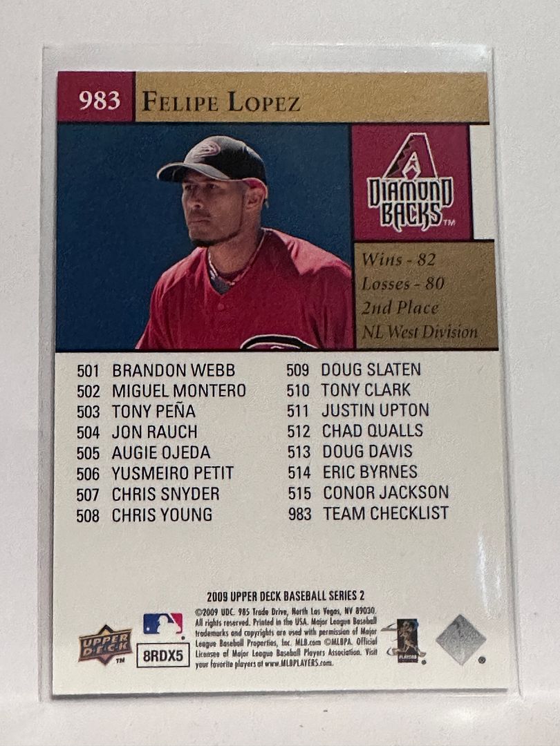 #983 Felipe Lopez Checklist Arizona Diamondbacks 2009 Upper Deck Series 2 Baseball
