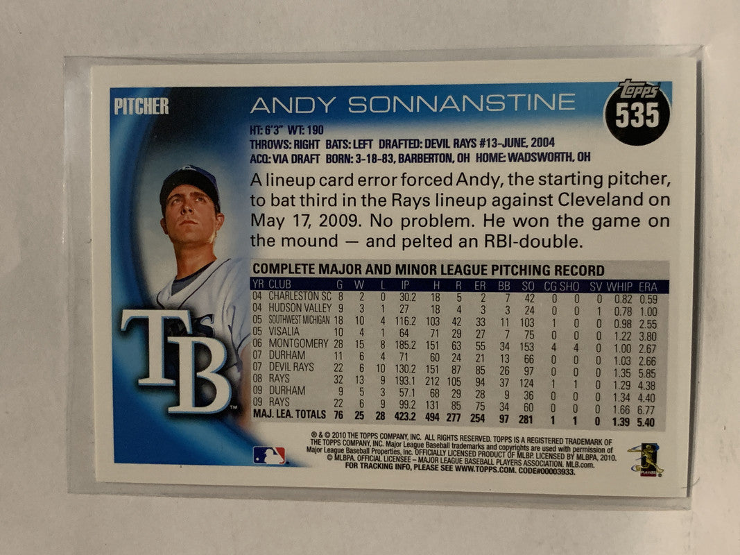 #535 Andy Sonnanstine Tampa Bay Rays 2010 Topps Baseball Card