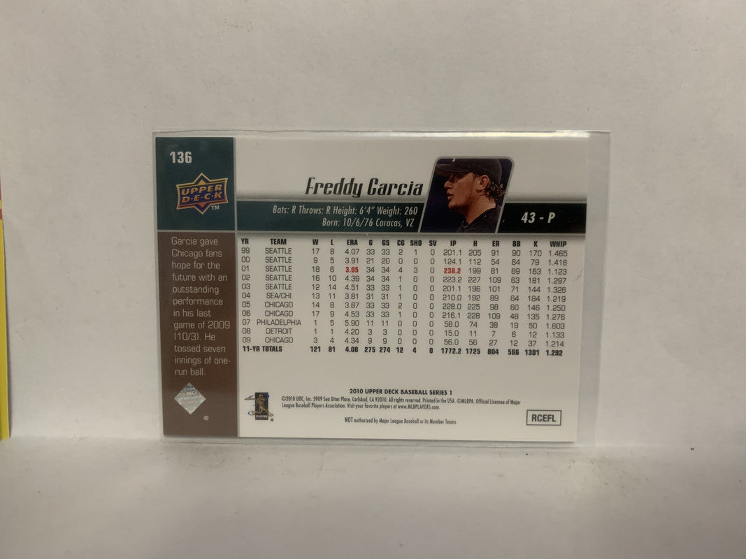#136 Freddy Garcia Chicago White Sox 2010 Upper Deck Series 1 Baseball Card NG