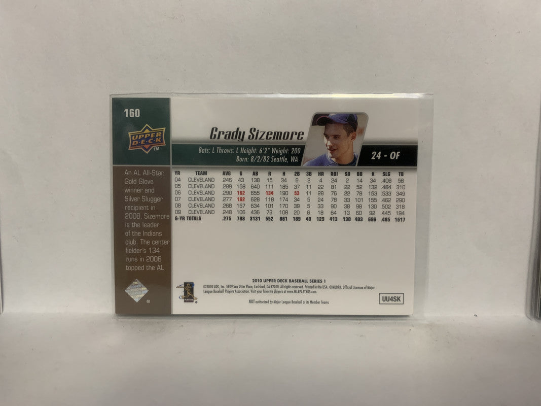 #160 Grady Sizemore Cleveland Indians 2010 Upper Deck Series 1 Baseball Card NI