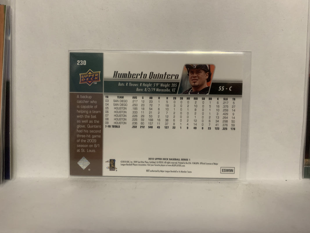 #230 Humberto Quintero Houston Astros 2010 Upper Deck Series 1 Baseball Card NH