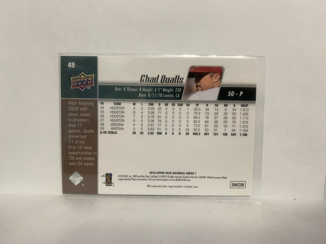 #49 Chad Qualls Arizona Diamondbacks 2010 Upper Deck Series 1 Baseball Card NG