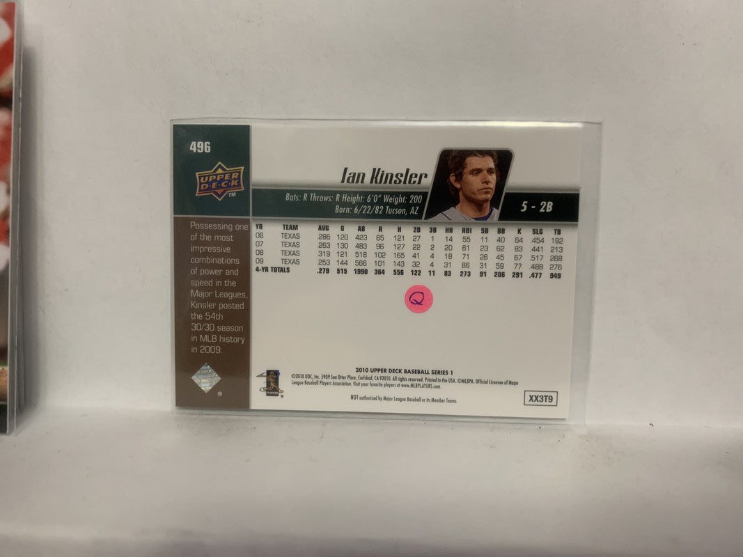#496 Ian Kinsler Texas Rangers 2010 Upper Deck Series 1 Baseball Card NI