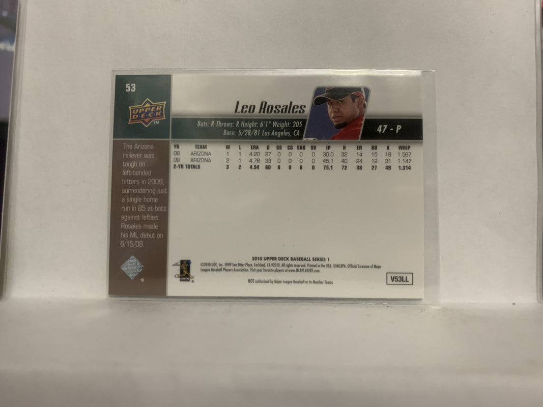 #53 Leo Rosales Arizona Diamondbacks 2010 Upper Deck Series 1 Baseball Card NH