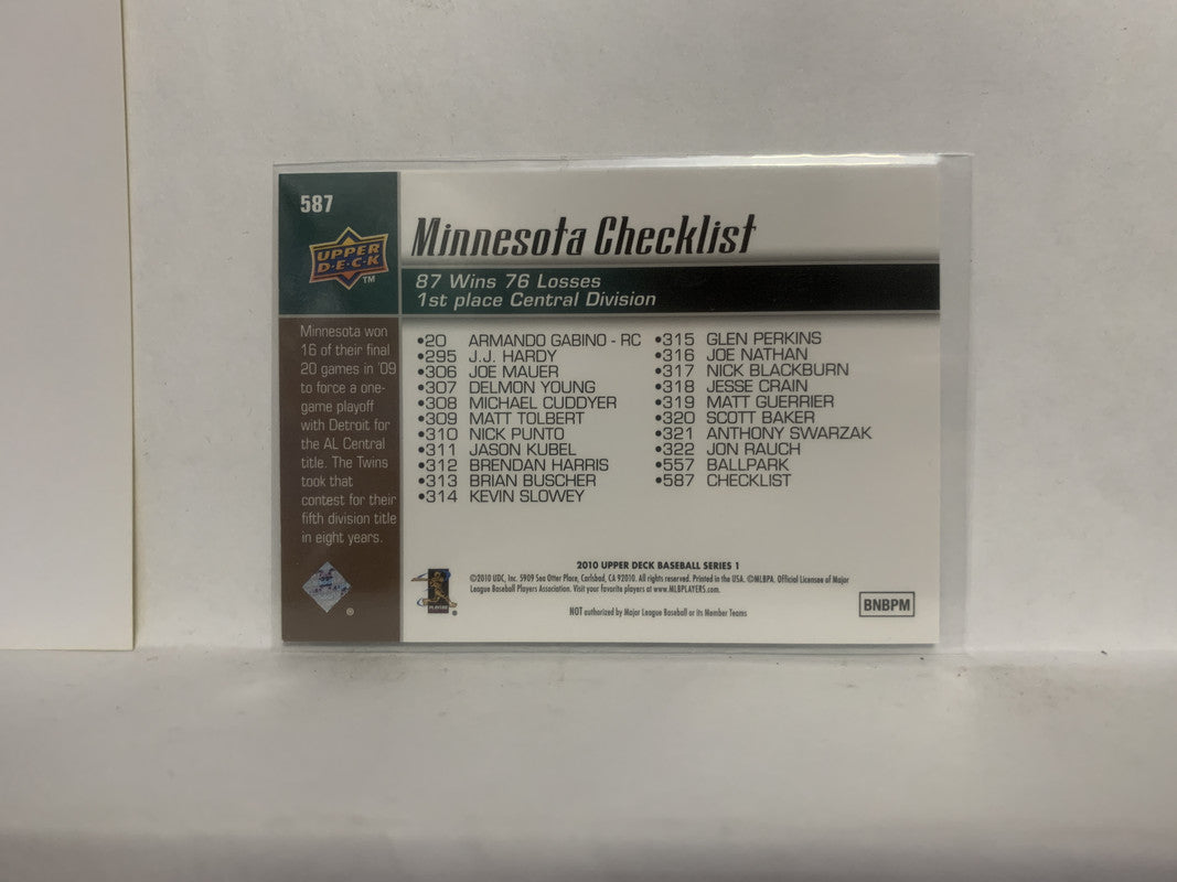 #587 Checklist Minnesota Twins 2010 Upper Deck Series 1 Baseball Card NJ