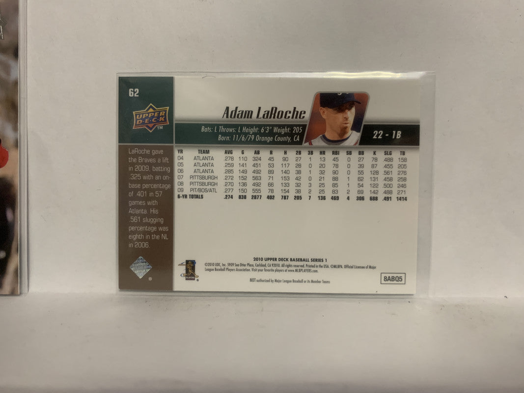 #62 Adam LaRoche Atlanta Braves 2010 Upper Deck Series 1 Baseball Card NI