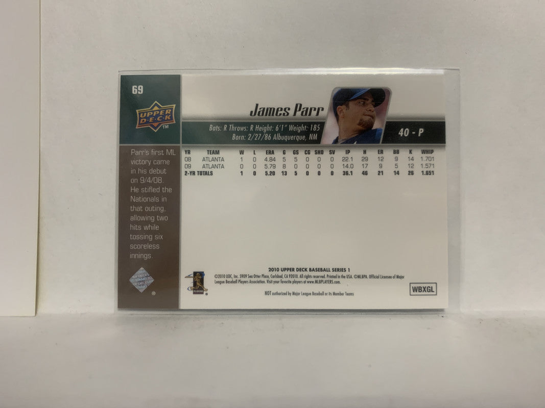 #69 James Parr Atlanta Braves 2010 Upper Deck Series 1 Baseball Card NH