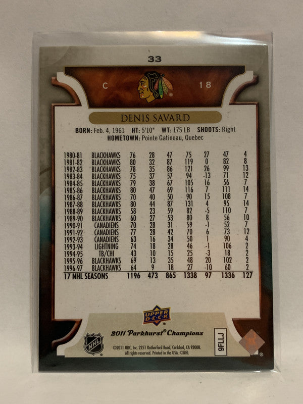 #33 Denis Savard Chicago Blackhawks 2011-12 Parkhurst Champions Hockey Card NHL