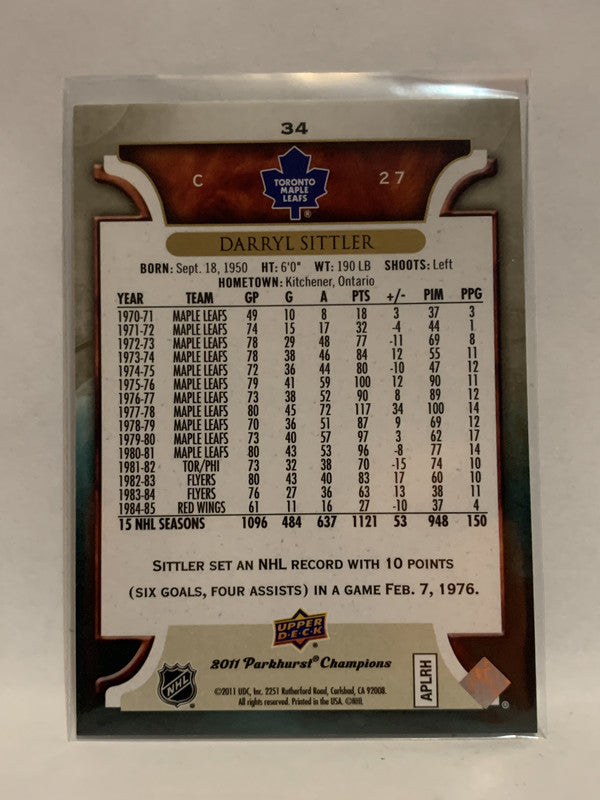 #34 Darryl Sittler Toronto Maple Leafs 2011-12 Parkhurst Champions Hockey Card NHL