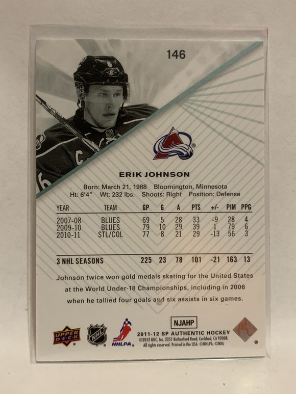 #146 Erik Johnson Colorado Avalanche 2011-12 SP Authentic Hockey Card NHL