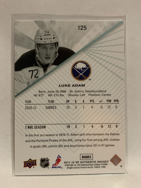 #125 Luke Adam Buffalo Sabres 2011-12 SP Authentic Hockey Card NHL