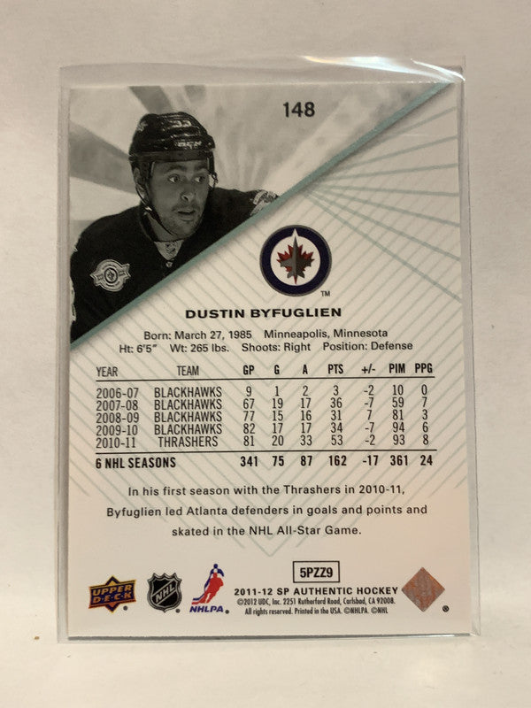 #148 Dustin Byfuglien Winnipeg Jets 2011-12 SP Authentic Hockey Card NHL