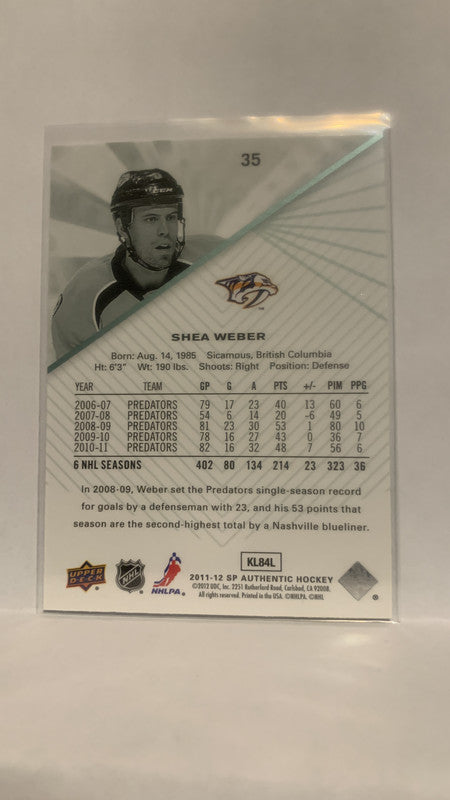 #35 Shea Weber Nashville Predators 2011-12 SP Authentic Hockey Card