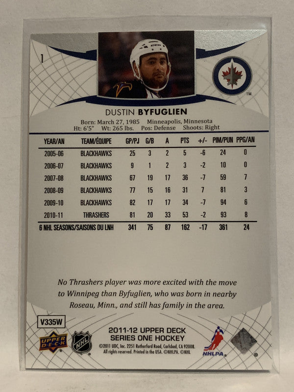 #1 Dustin Byfuglien Winnipeg Jets 2011-12 Upper Deck Series One Hockey Card