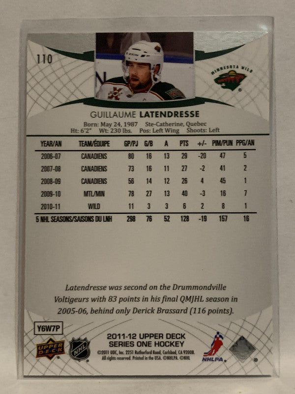 #110 Guillaume Latendresse Minnesota Wild 2011-12 Upper Deck Series One Hockey Card