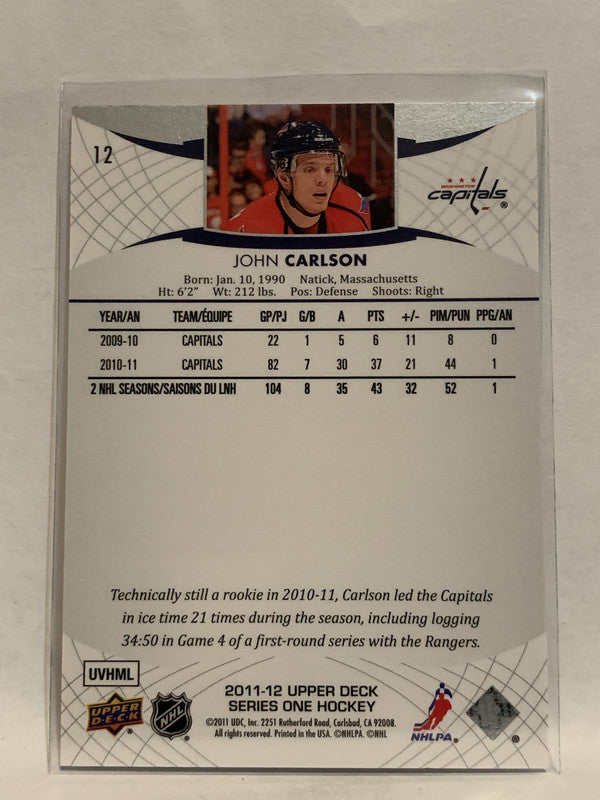 #12 John Carlson Washington Capitals 2011-12 Upper Deck Series One Hockey Card