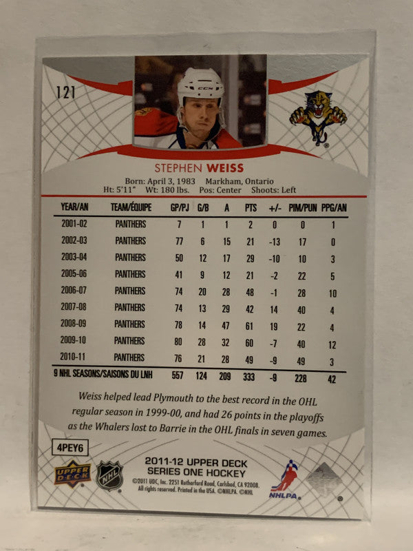#121 Stephen Weiss Florida Panthers 2011-12 Upper Deck Series One Hockey Card