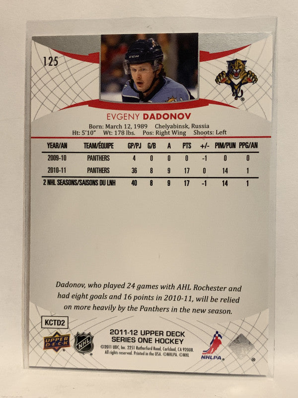 #125 Evgeny Dadonov Florida Panthers 2011-12 Upper Deck Series One Hockey Card
