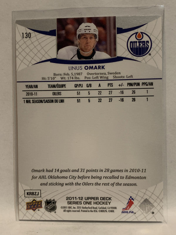 #130 Linus Omark Edmonton Oilers 2011-12 Upper Deck Series One Hockey Card