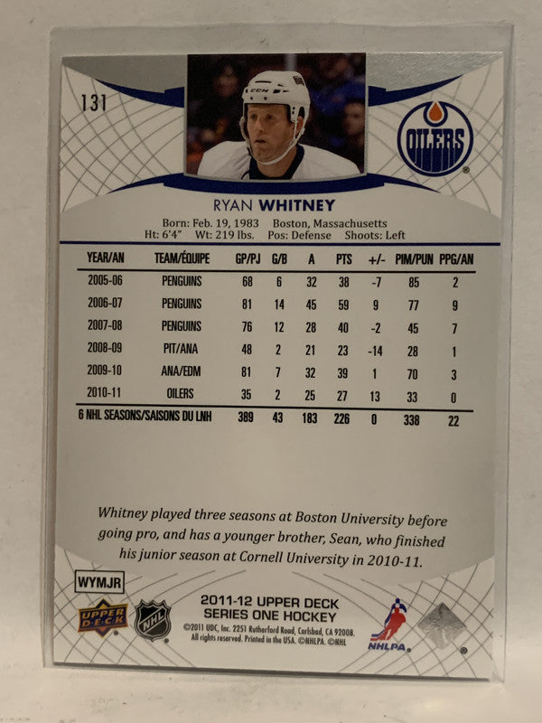 #131 Ryan Whitney Edmonton Oilers 2011-12 Upper Deck Series One Hockey Card