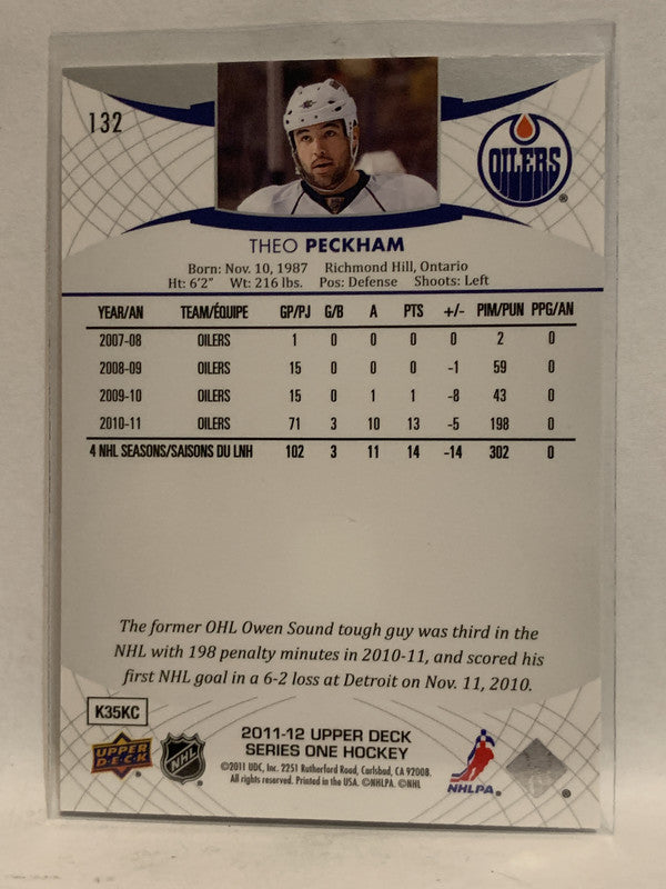 #132 Theo Peckham Edmonton Oilers 2011-12 Upper Deck Series One Hockey Card