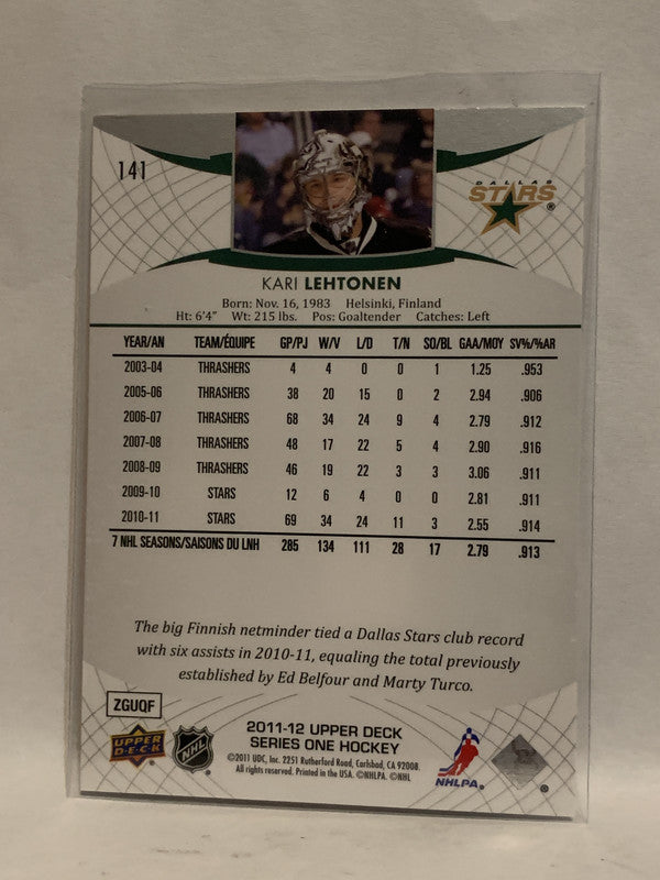 #141 Kari Lehtonen Dallas Stars 2011-12 Upper Deck Series One Hockey Card