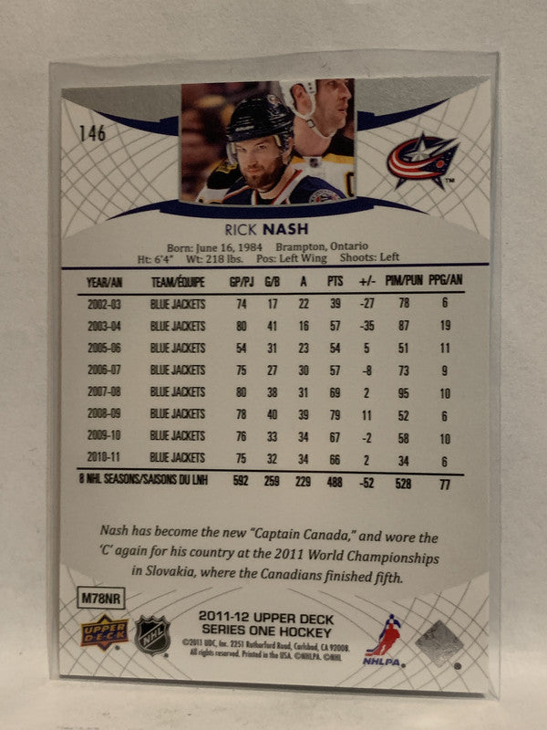 #146 Rick Nash Columbus Blue Jackets 2011-12 Upper Deck Series One Hockey Card