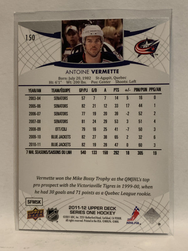 #150 Antoine Vermette Columbus Blue Jackets 2011-12 Upper Deck Series One Hockey Card