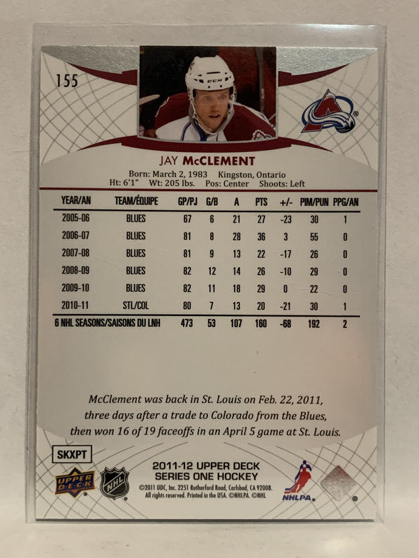 #155 Jay McClement Colorado Avalanche 2011-12 Upper Deck Series One Hockey Card NHL